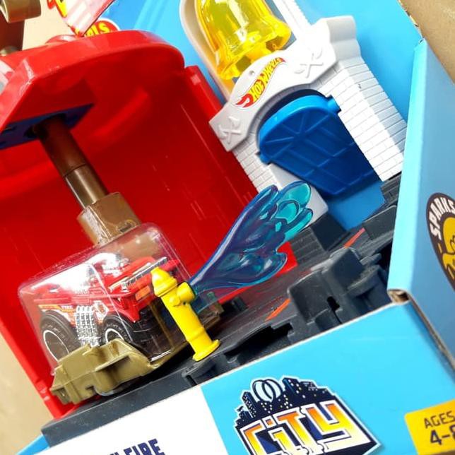 Dh Hotwheels Track City Downtown Fire Station Spinout Play Set Dijual Murah Shopee Indonesia