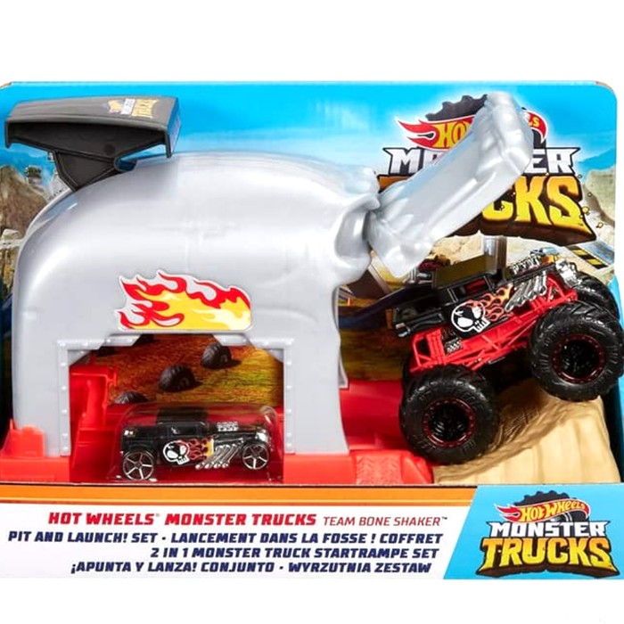Faiz00060 Monster Trucks Bone Shaker Pit And Launch Hot Wheels