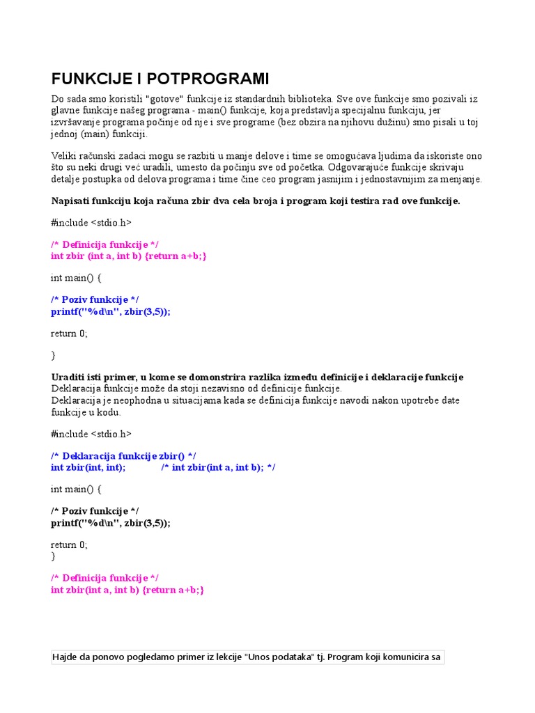 Funkcije I Potprogrami Napisati Funkciju Koja Racuna Zbir Dva