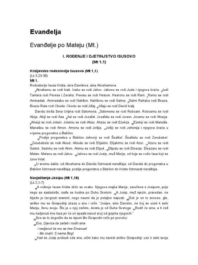 Evanđelje Po Mateju Mt I Rodenje I Djetinjstvo Isusovo Mt 1 1