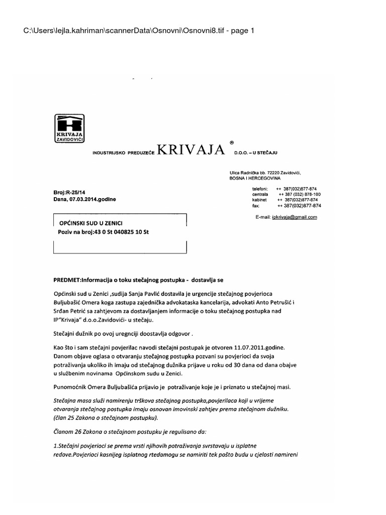 Stecajni Krivaja Odgovor Anto Petrusic