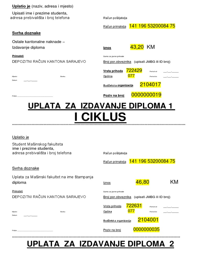 I Ciklus Uplata Za Izdavanje Diploma 1