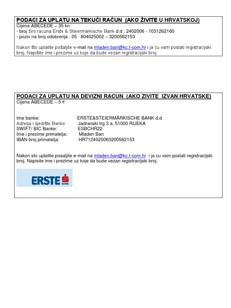 Poziv Na Broj Primatelja Erste