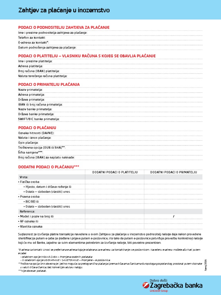 Zahtjev Za Placanje U Inozemstvo E Poslovnica Pdf
