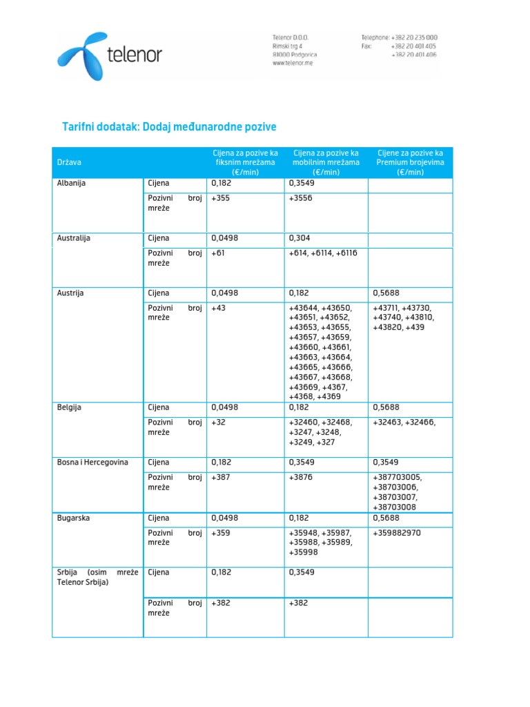 Cjenovnik Dodaj Medjunarodne Pozive 2018