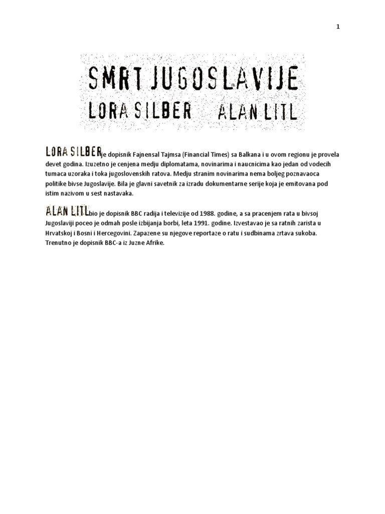 Lora Silber Alan Litl Smrt Jugoslavije