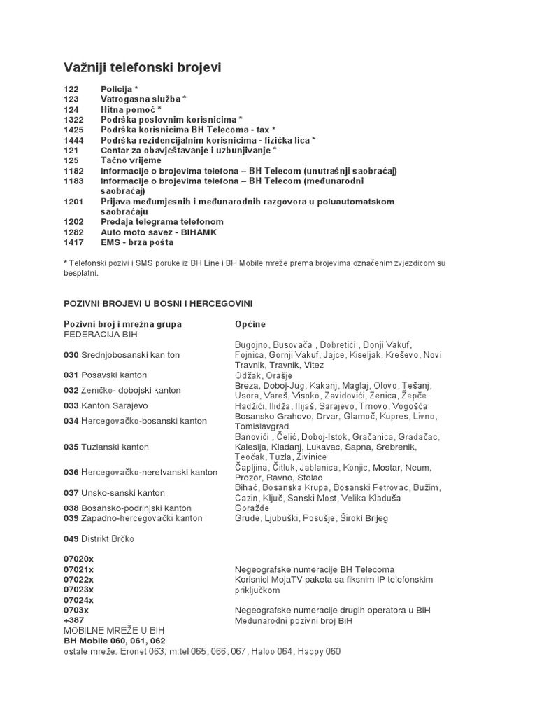 Bh Telecom Pozivni Brojevi Za Inostranstvo