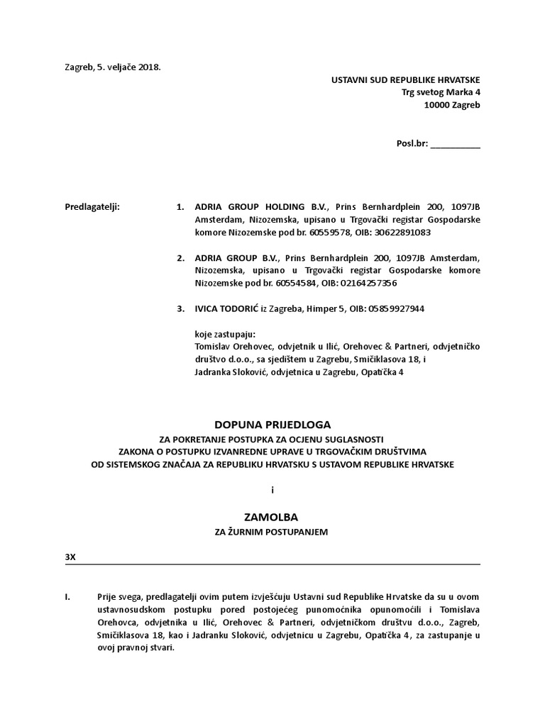 Dopuna Prijedloga Ocjene Ustavnosti Todoric