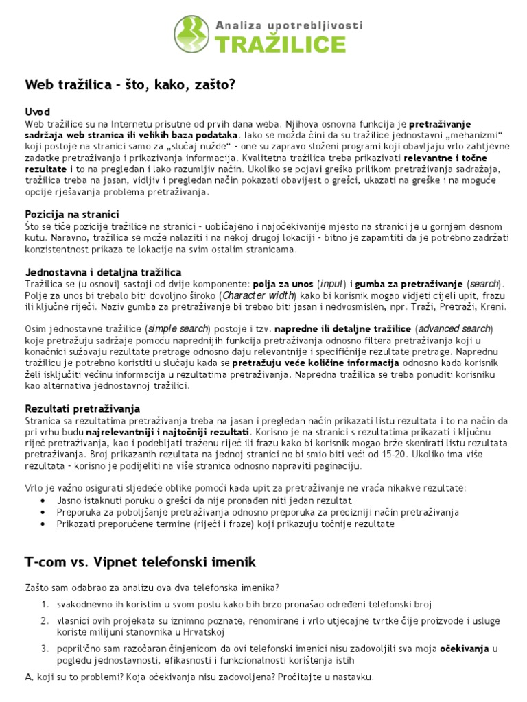Analiza Web Upotrebljivosti Telefonskih Imenika Tcom Vs Vipnet